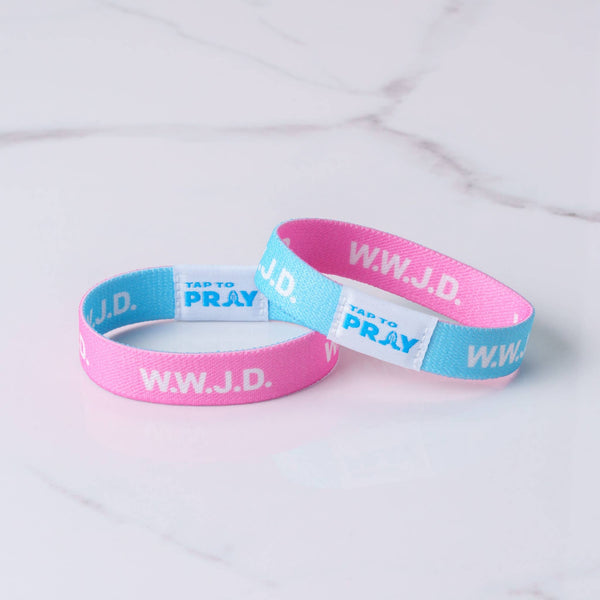 Tap To Pray™ Wristbands - Blue & Pink WWJD